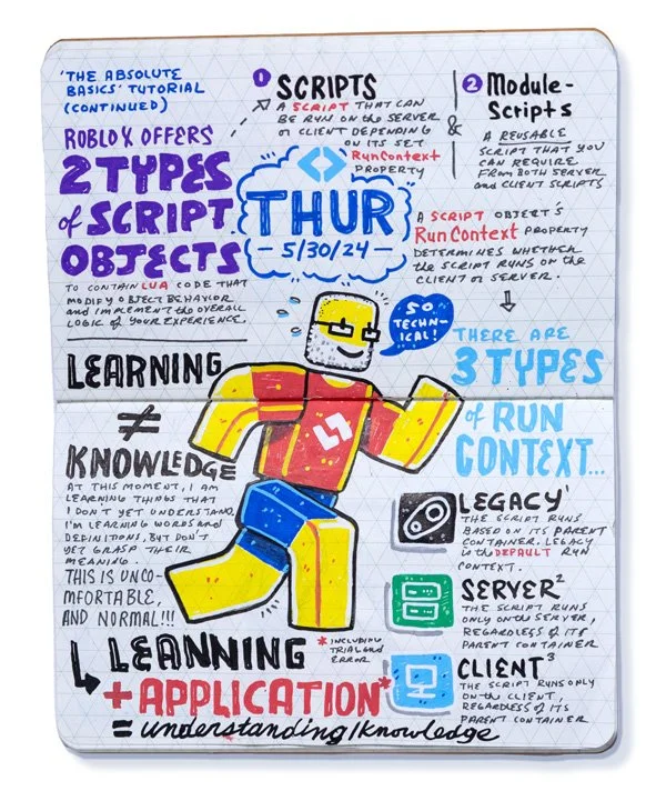 Above: Journaling my experience playing Tower Defense Simulator on Roblox for research and recreation as I learn the skills I will need to assist my son in developing his dream tower defense game.