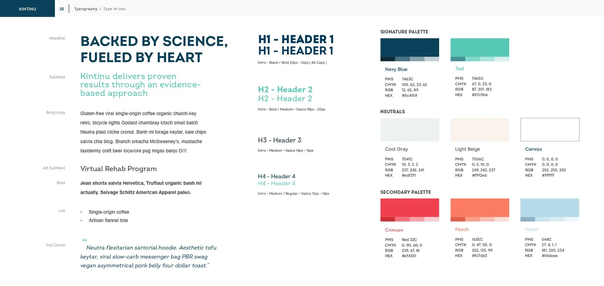 Right on schedule, after weeks of video calls and refinements, the newly named Kintinu team was able to roll out their the brand for their telehealth group, including positioning, messaging, and a suite of marketing materials and brand guidelines document.